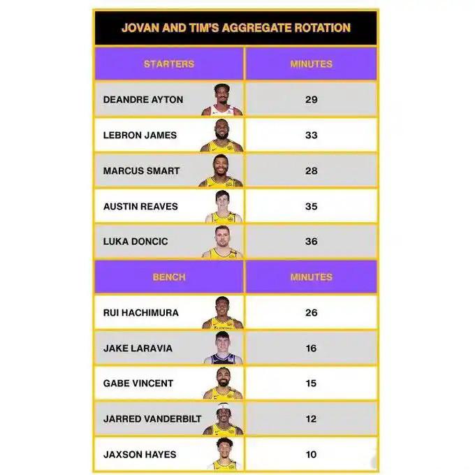 24-25季全明星前湖人整体三分出手占比40%、全明星后数值上升到47%。也就是说,随着东契奇的到来三分愈发成为球队主要终结手段。从这个角度看,虽然表现缺乏稳定性且时常陷入交易传闻,但对骑士、森林狼这些内线占优的球队时克内克特还是有表现机会的。