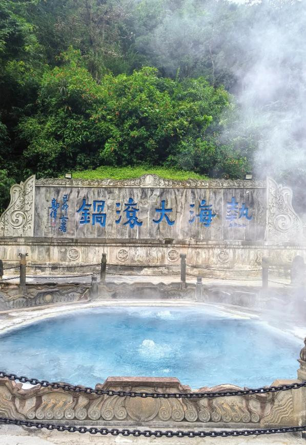 热海景区集齐硫磺泉、碳酸泉和大滚锅等自然奇观,大滚锅水温高达96.6℃,蛋可以煮熟,手不能伸太近。