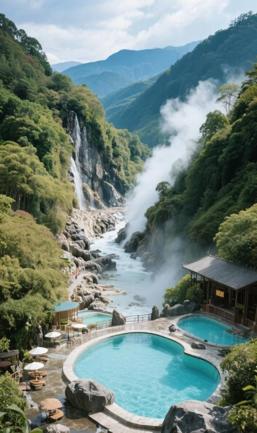 泉雾升腾时,像仙气缭绕,蒸汽缠绕在脸颊上,潮湿但不黏腻。可以体验用温泉蒸蛋,或者泡个脚,让山下的疲惫在热水里慢慢散开。