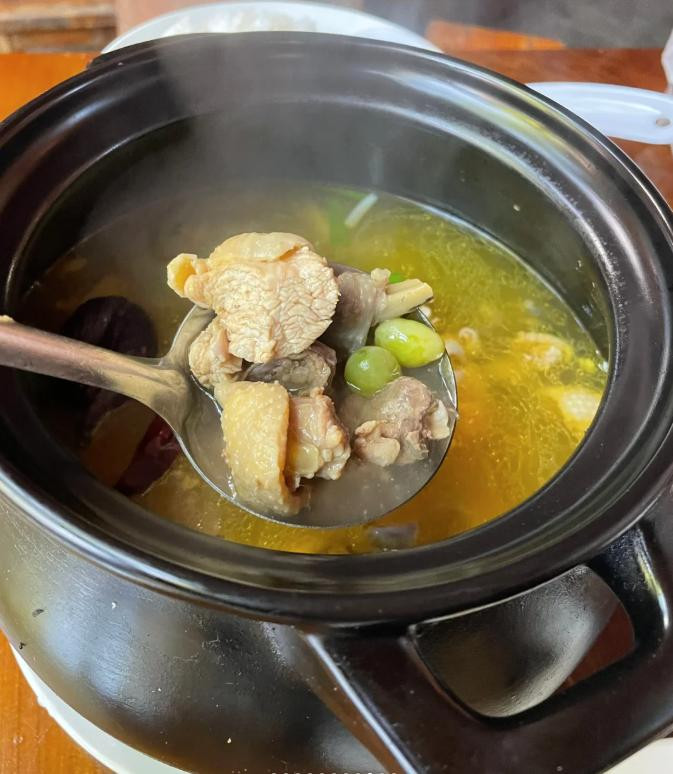 银杏炖土鸡、炭烤银杏果,味道纯粹,不讲究摆盘,也不花哨,就是地热蒸煮出来的一口“热腾腾”。
