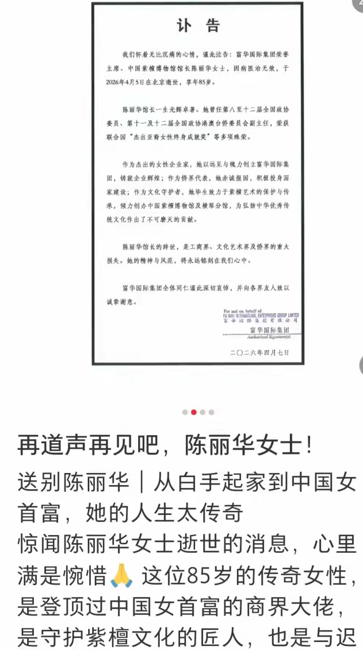 4月5日陈丽华在北京病逝,4月7日官方正式发讣告!这位曾经的中国女首富,最后一次出现在人前,是三年前给星云大师办追悼会!