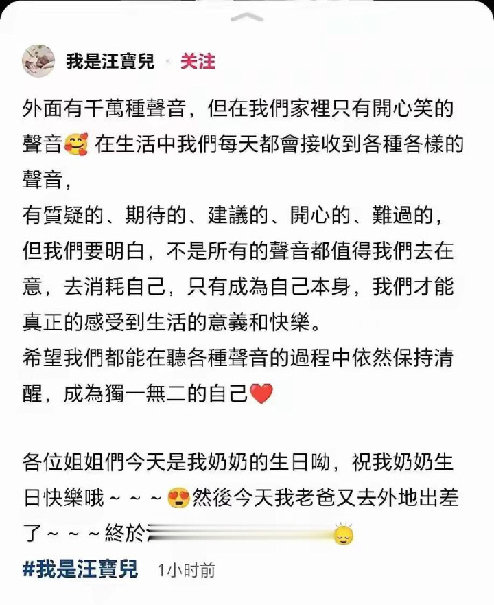外界最会放大的,当然还是“家人去哪了”,当天稍晚些时候,马筱梅确实通过孩子账号发出了一段生日祝福,文案中还提到汪小菲因出差未能陪伴张兰过生日。