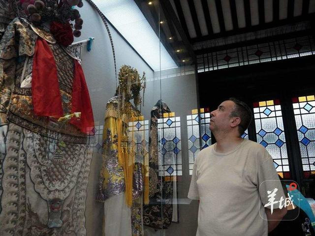 随后,他步入博物馆展厅,参观了珍贵的粤剧文物。从历经百年的戏服、精致华美的头饰,到泛黄陈旧的剧本乐器,他系统地了解了粤剧自明清红船时代至今的发展历程。据悉,该博物馆于2017年荣获“中国建筑工程鲁班奖”,2020年被核定为国家二级博物馆,这让Karem对岭南文化的博大精深有了更为直观的认识。