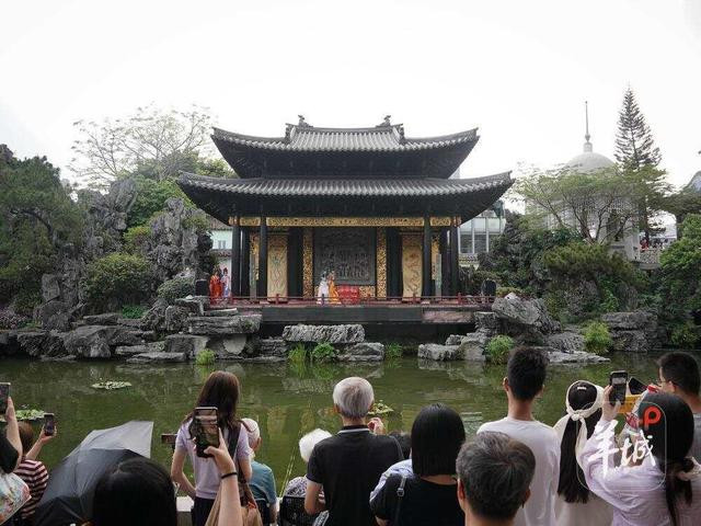 在博物馆内的广福戏台,Karem观赏了一场精彩绝伦的粤剧表演。这座采用纯木结构打造的仿古戏台,生动复刻了旧时“水边听戏”的民俗风情。悠扬婉转的粤曲唱腔在水面上悠悠回荡,Karem被“南国红豆”的独特魅力深深吸引。