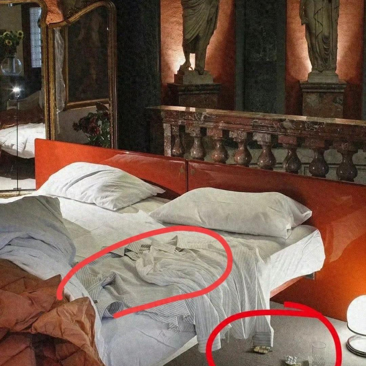 不是穿搭不好看,是照片里藏了些“不该出现”的东西:床上摆着件男士衬衫,地板上团着块布看着像男士内裤,旁边还散落着几盒没标清名字的药。