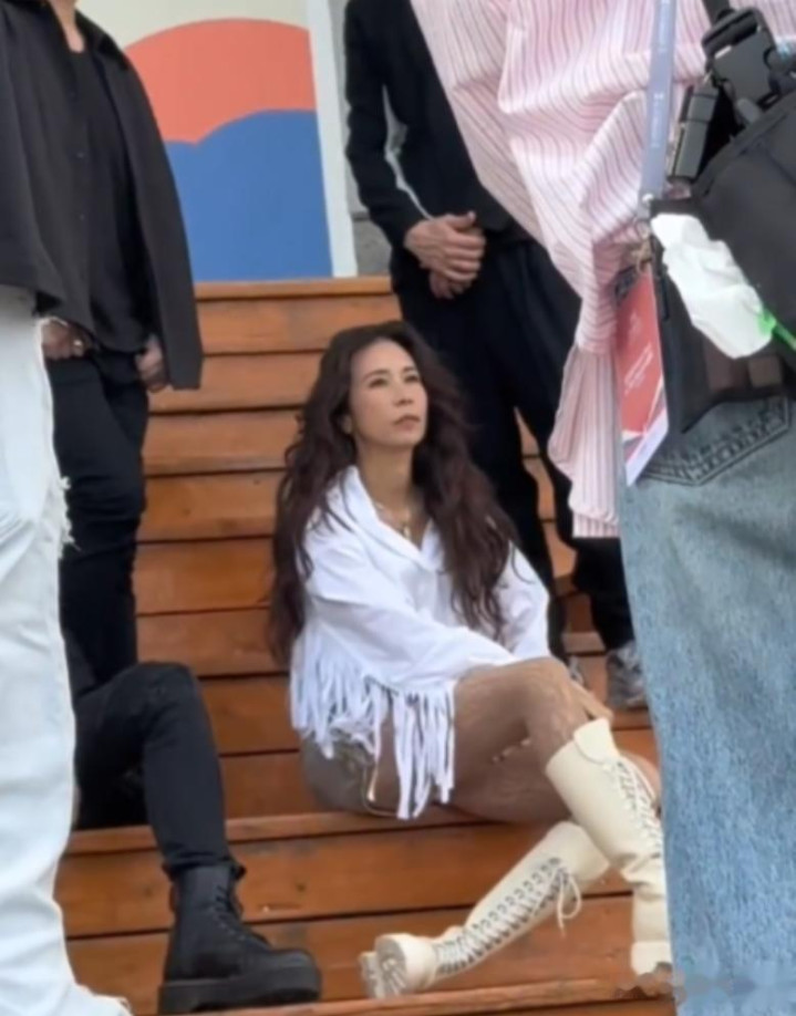 而莫文蔚则坐在中间C位,她叉着腿,摆出一副大佬的坐姿,看着很是霸气。