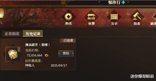 其次,开服第二天是周六,就碰上新区开启首个产出顶级稀有道具“神兵碎片”的血战神兵岭玩法,非常红的产出了全服第一片神兵碎片,被老板以7200万铜币的价格拍下,按照目前金价大概在2万多人民币,在场的每个人都分了不少钱!
