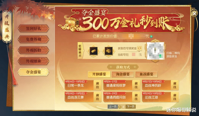 首先最普通的就是官方开启的“夺金盛宴”,大家跟着进度做日常任务、打周常副本等,就有机会掉落5块钱的小金条和50块钱的大金条。