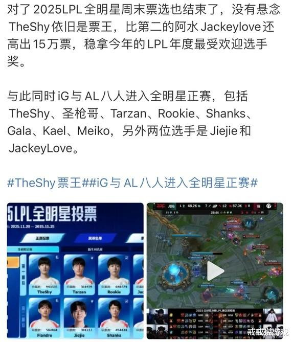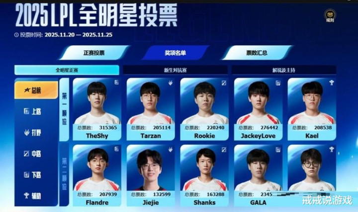 2025LPL全明星票选落幕, TheShy狂揽94万票, 15万断层碾压对手!